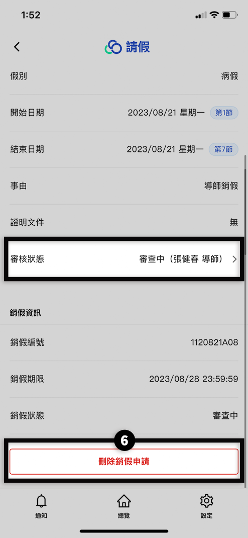 家長自身申請的假單在未有任何審查前,可點擊「刪除假單」按鈕刪除此筆假單。
