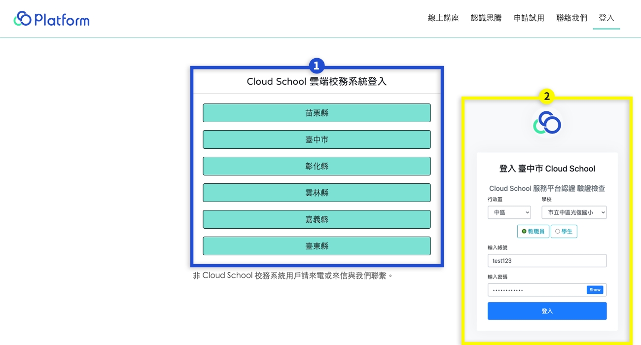 系統提供兩種登入方式,可以學校與使用者需求選用。