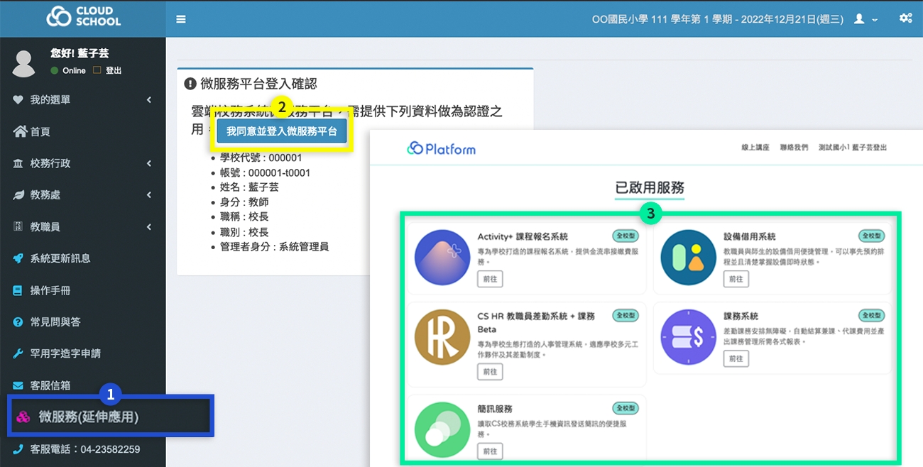 - 點擊「我同意並登入微服務平台」轉登入至 Cloud School Platform 微服務平台。